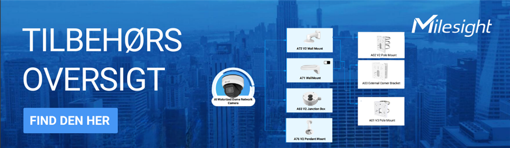 Milesight har udviklet et sortiment af tilbehør og monteringsbeslag, som supplement til deres kameraer og systemer. Monteringsbeslagene er meget kunde- og brugerorienterede og er af høj kvalitet, for at opnå optimal ydeevne i videoovervågningen. Beslagene er designet og udvilket med fokus på at de skal være nemme at montere, samtidig med at det ser pænt ud.